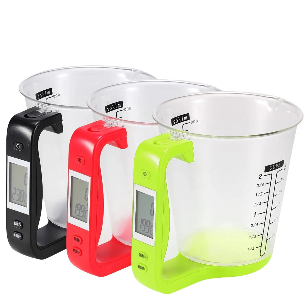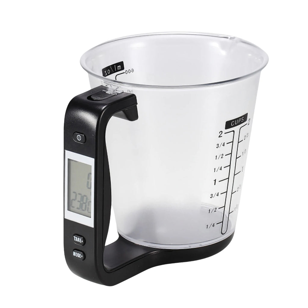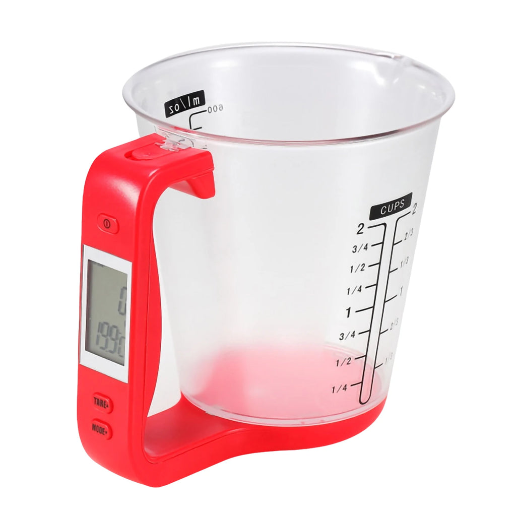 O Copo de Medida Inteligente tem uma capacidade de peso de até 1000g, com uma graduação de 1g para precisão precisa. Além disso, possui capacidade líquida de 100ml, 200ml, 300ml, 400ml, 500ml e 600ml para medição de líquidos.