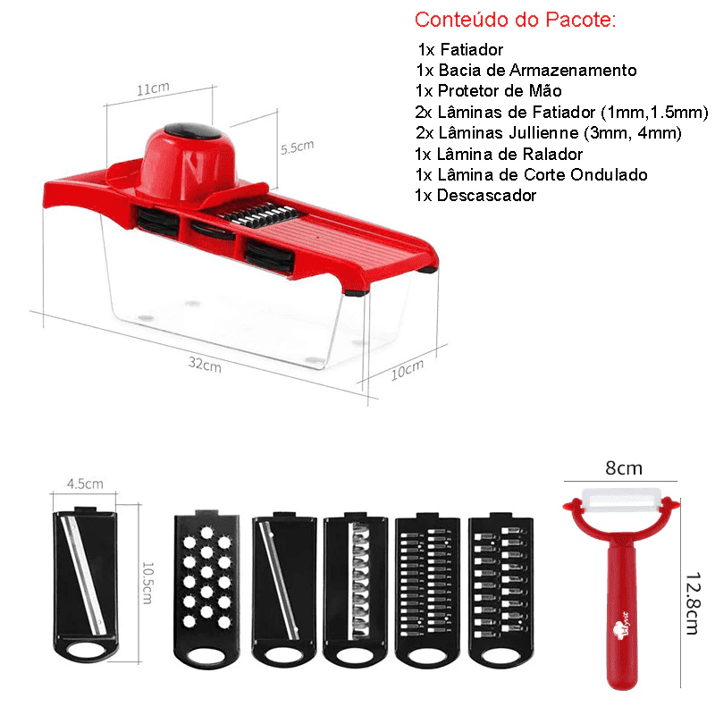 O Cortador Fatiador Multifuncional é a solução ideal para preparar rapidamente lanches e refeições. Com ele, você pode fazer inúmeros cortes em legumes e frutas com rapidez e precisão.