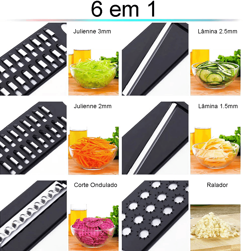 O Cortador de Legumes 6 em 1 oferece uma solução fácil e prática para preparar qualquer receita com rapidez e facilidade, economizando tempo precioso para saborear suas comidas.